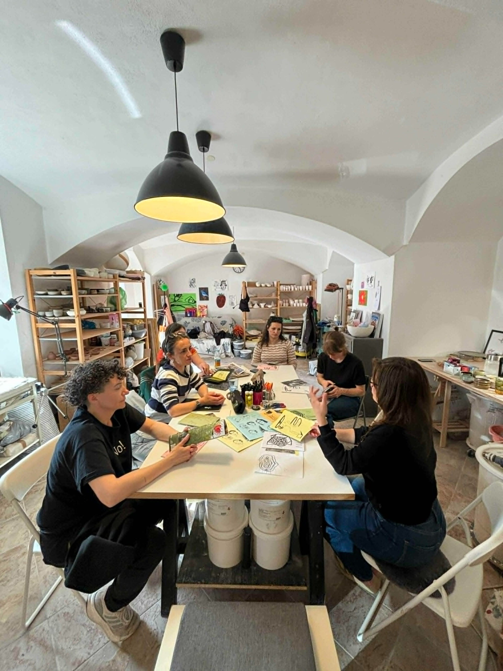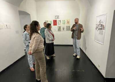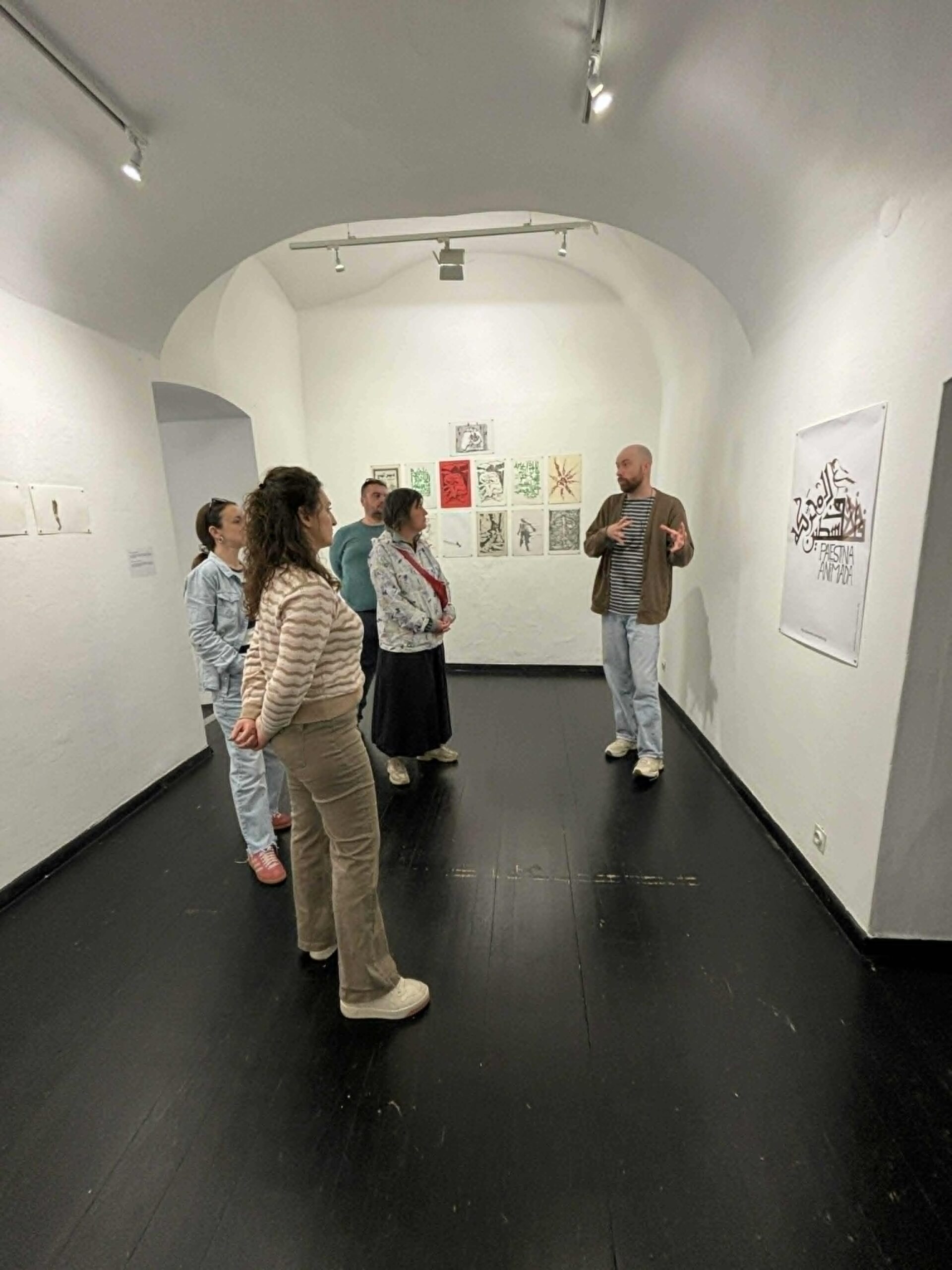 During the study visit there was inspiring presentation delivered by Veronika Hovnik from the elementary school Janeza Levca Ljubljana, who shared valuable insights into their work with children and youth with intellectual disabilities, emphasizing practical approaches to inclusive education, the importance of adapting content and environments to diverse needs, and especially the significance of strong collaboration between schools and cultural institutions in ensuring equal access, participation, and personal development for young people with disabilities. Guided tour of the exhibition Jetka Palestina was provided from our partners in Škuc Gallery. As part of the programme, participants also took part in a guided tour of Ljubljana organized by Kralj Ulice, gaining insight into the city through a unique social perspective that highlights inclusion, community stories, and the realities of marginalized groups. Another inspiring part of the visit was the creative workshop facilitated by Nevena, where participants engaged in the creation of a fanzine dedicated to cultural inclusion, using artistic expression as a tool to share experiences, reflect on challenges, and exchange good practices and methods that can be applied in youth work, demonstrating how simple and creative approaches can foster dialogue, empowerment, and community-building. The programme also included a visit to the MGLC – International Centre of Graphic Arts, where participants explored how museums and cultural institutions can actively contribute to inclusive education through accessible programmes, interactive exhibitions, and youth-focused activities that promote creativity, critical thinking, and participation for diverse groups, including persons with disabilities.