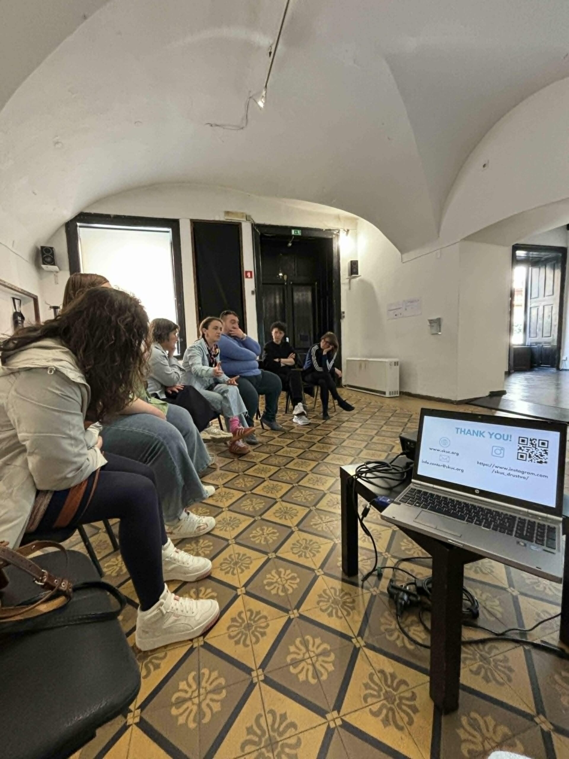 The study visit began with a warm welcome and introduction to the work of ŠKUC, an organization with a long-standing tradition in promoting alternative and inclusive cultural practices, youth engagement, and support for emerging artists, setting the tone for a dynamic exchange of ideas and practices. Throughout the visit, participants explored how culture can act as a powerful tool for inclusion, participation, and social change, while building connections and reflecting on their own work in different local contexts.