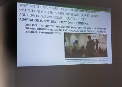 The day continued with a guided visit to the exhibition Art Vital at the Cukrarna Gallery, a former sugar factory transformed into a vibrant contemporary art space and cultural hub, where participants had the opportunity to learn from Nina Vošnjak, who presented valuable good practices on how contemporary art can be made inclusive and accessible for various marginalized and vulnerable groups, highlighting innovative approaches in adapting exhibitions, interpretation, and educational activities to diverse audiences.